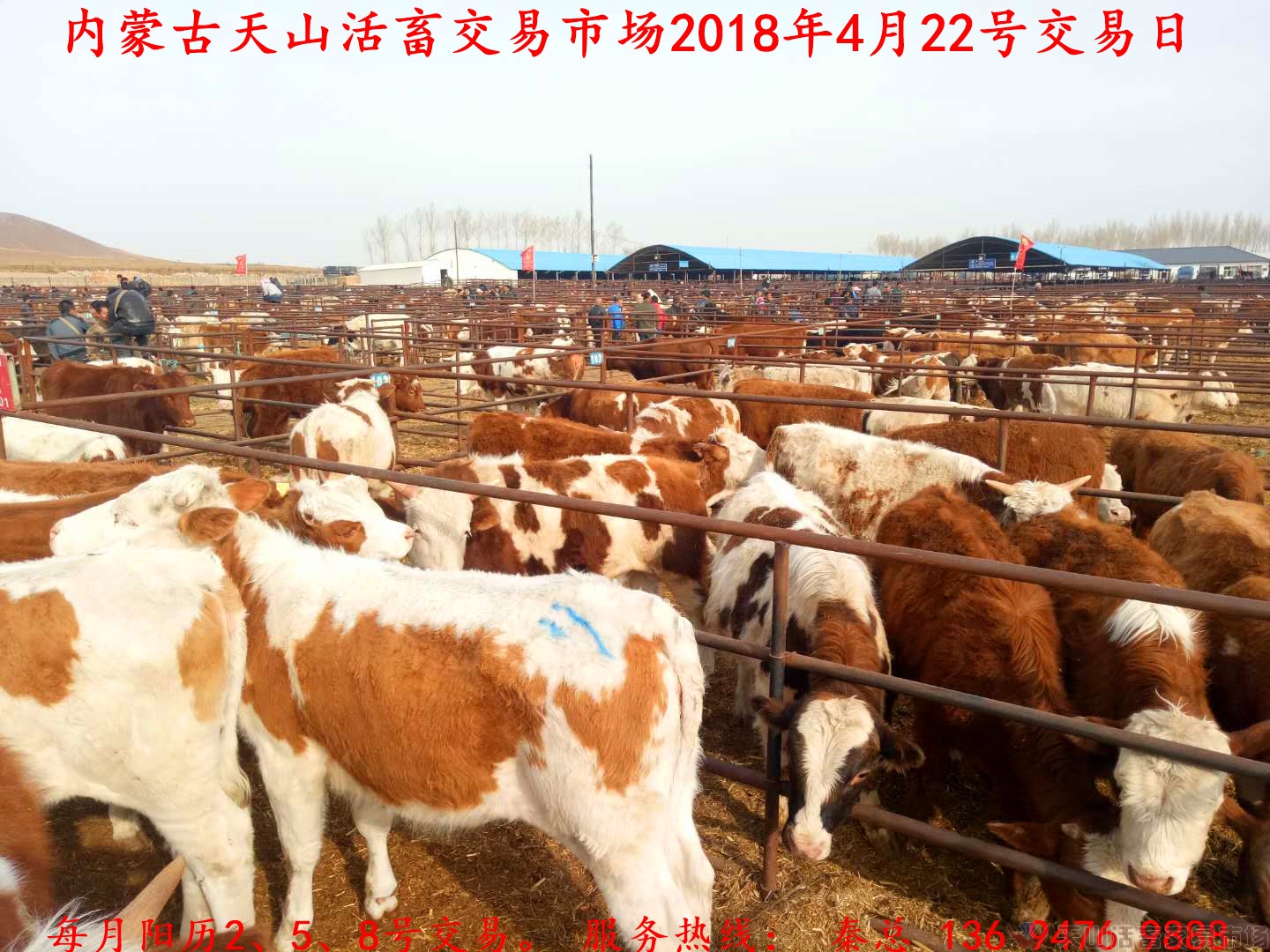 內(nèi)蒙古天山活畜交易市場主營:科爾沁草原自然放養(yǎng)的牛、馬、驢、羊。每月陽歷2、5、8日上午為交易日,是內(nèi)蒙古和東北地區(qū)規(guī)模較大的牲畜交易市場。市場基礎(chǔ)設(shè)施齊全,管理規(guī)范,服務(wù)周到,企業(yè)有6000多平方米綜合樓一處,為客戶提供:信息發(fā)布,網(wǎng)上交易,電子結(jié)算,運輸車輛,牲畜檢疫,餐飲住宿等服務(wù)。市場被評為國家級、自治區(qū)級、市級農(nóng)牧業(yè)產(chǎn)業(yè)化重點龍頭企業(yè)。 服務(wù)熱線: 秦總 13694769888